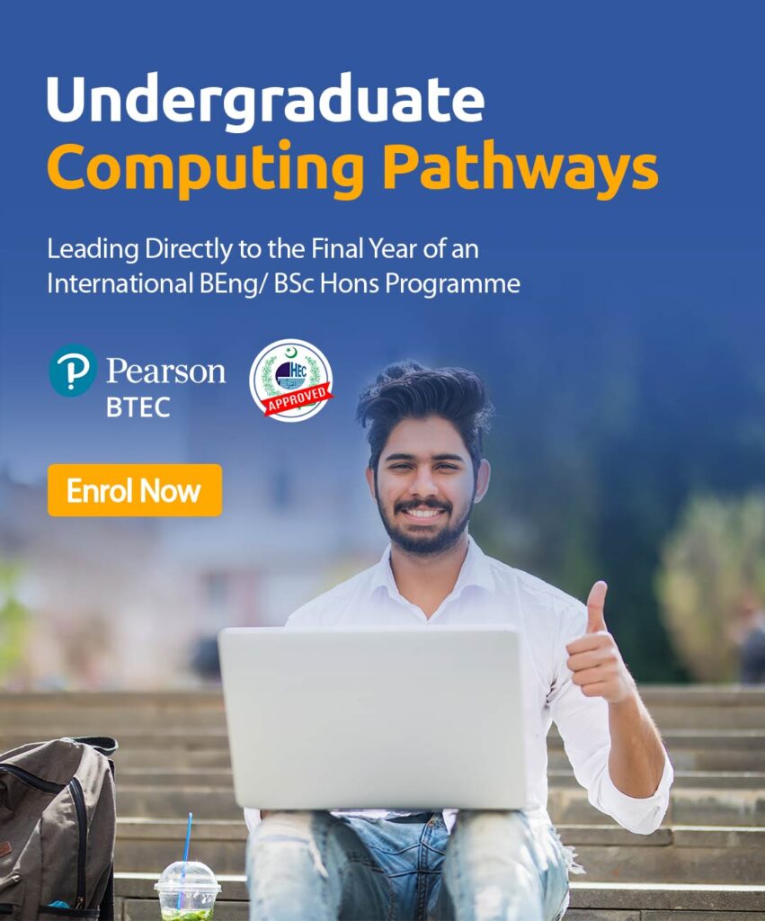 The programme provides students the opportunity to learn and acquire skills constructed on two diverse progression pathways leading them towards to a relevant career path they desire. By succesfully completing both the diplomas (HND and HNC) at ECC, Students can further pursue a bachelors top up programme ((BS/ BS IT/ BA / BCS hon.) from any UK or international university.